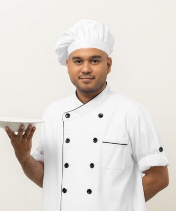 A hotel chef uniform, also known as “chef whites,” is a professional outfit designed for kitchen safety, hygiene, and the chef’s authoritative presence. The classic ensemble includes a double-breasted jacket (typically white, sometimes colored or black), houndstooth or black trousers, an adjustable white toque/chef hat, and a long, protective apron.
