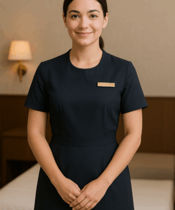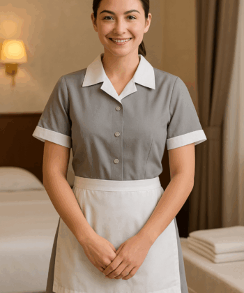 A hotel housekeeping uniform is a functional, comfortable, and professional outfit designed to help housekeeping staff complete tasks efficiently while reflecting the hotel’s brand. Typically made from poly-cotton blends, polyester viscose, or high-performance cotton, these uniforms are durable, stain-resistant, and easy-care for frequent washing. The design often features: Modest collar