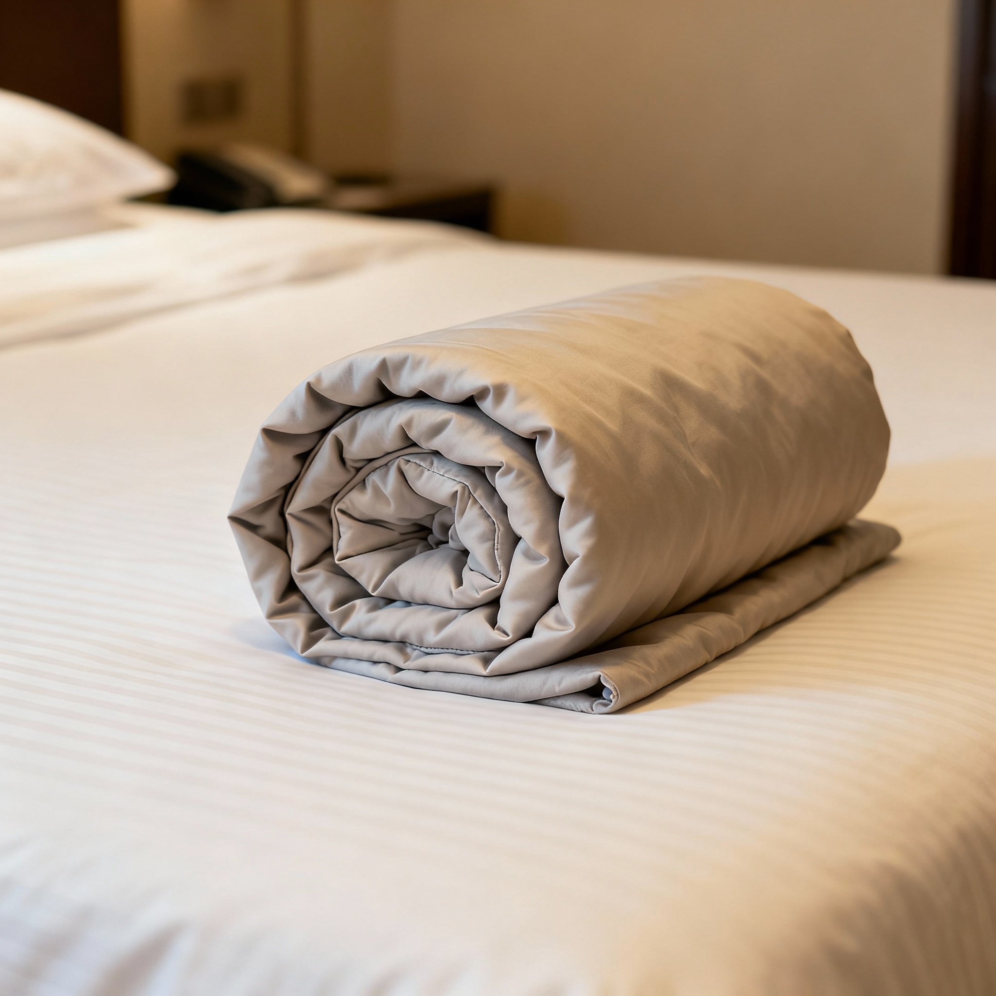 A hotel duvet cover is a protective and decorative layer, designed to encase a duvet insert. Made from soft, high-quality fabrics such as 100% cotton or a cotton-poly blend, it provides ultimate comfort, breathability, and luxurious touch for guests. Duvet covers feature high thread counts (180-400+), ensuring durability and long-lasting smoothness. They often come in plain white, stripes, or subtle patterns to match hotel decor, with closure options like zipper, flap, or envelope styles for easy maintenance. Machine washable and hypoallergenic, these covers are engineered to endure frequent laundering for hotel use while delivering a fresh and inviting guest experience.